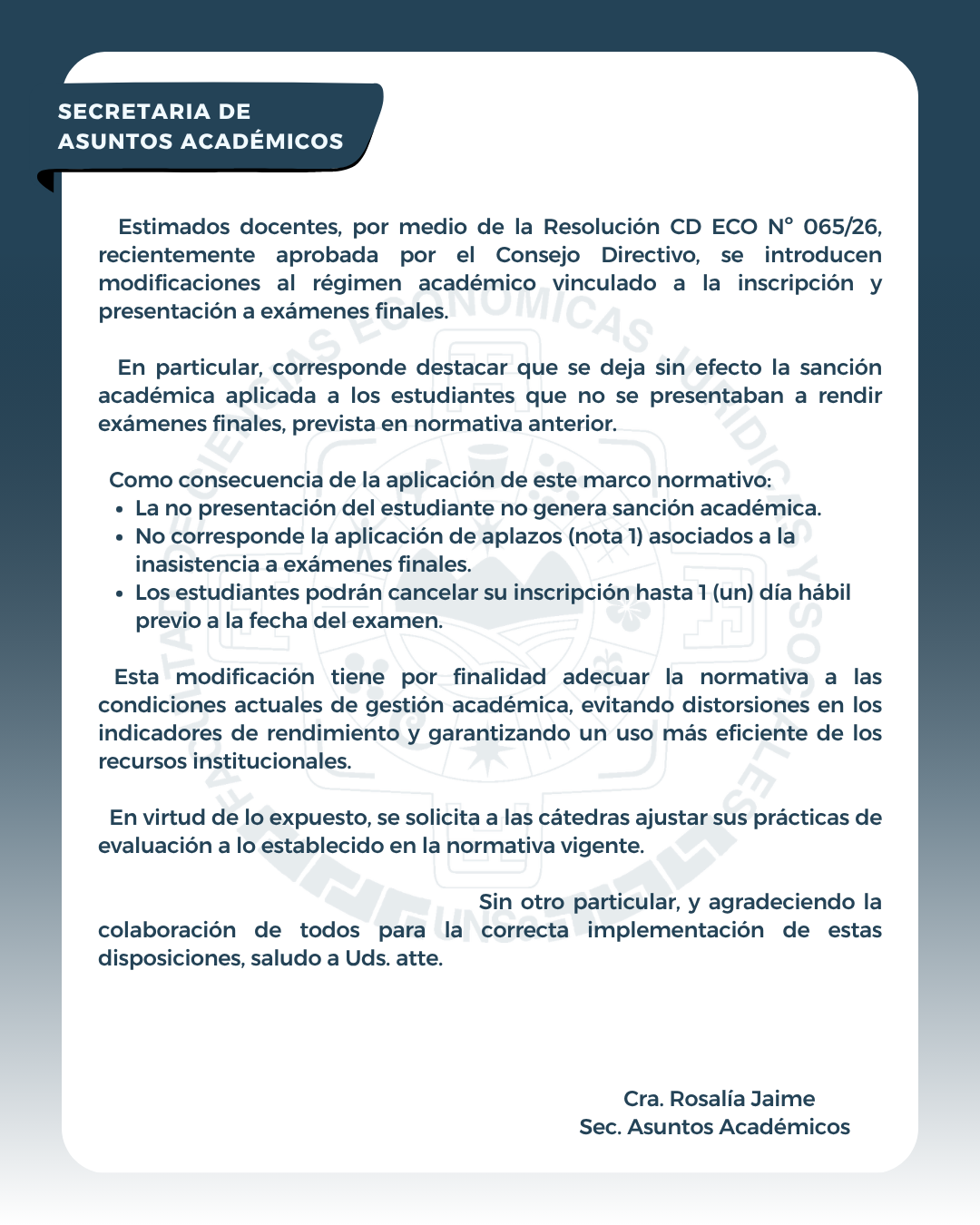 Mayor información: Página web de la Facultad de Ciencias Económicas, Jurídicas y Sociales: https://economicas.unsa.edu.ar/ - pestaña Docentes - Concursos - Llamados a concursos.