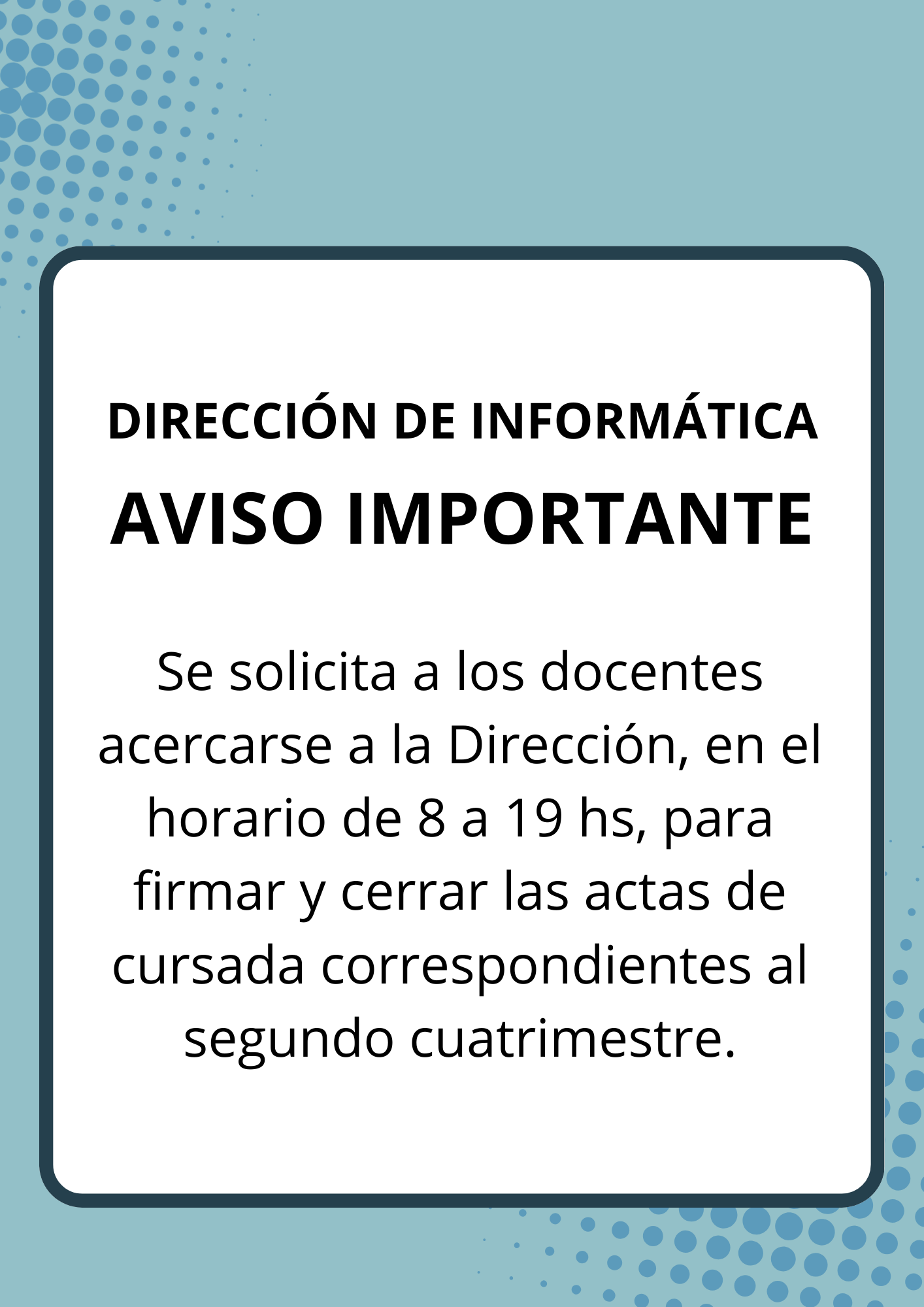 A todo el Personal Docente y Nodocente: