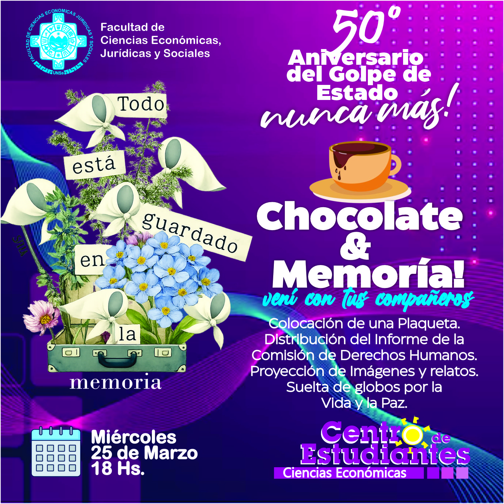 Te invitamos a participar de una jornada de reflexión por los 50 años del Golpe de Estado del 24 de Marzo de 1976.