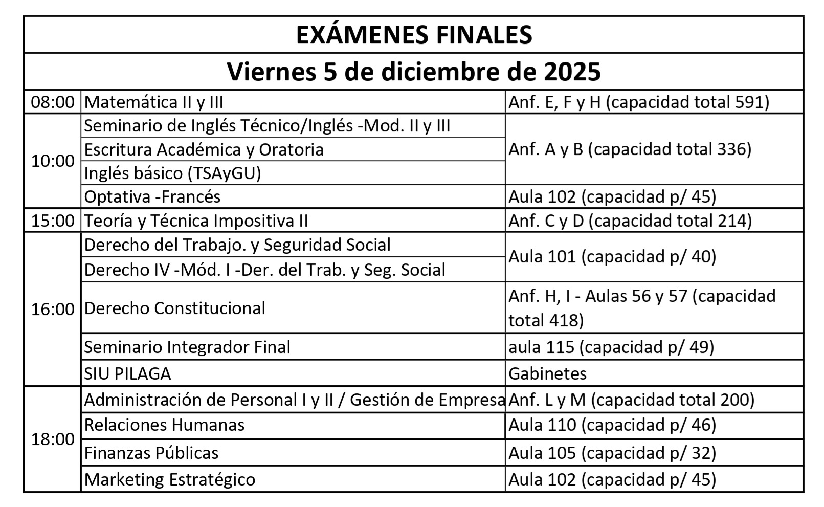 | 14:00 | Derecho Societario | Aula B (Facultad) |