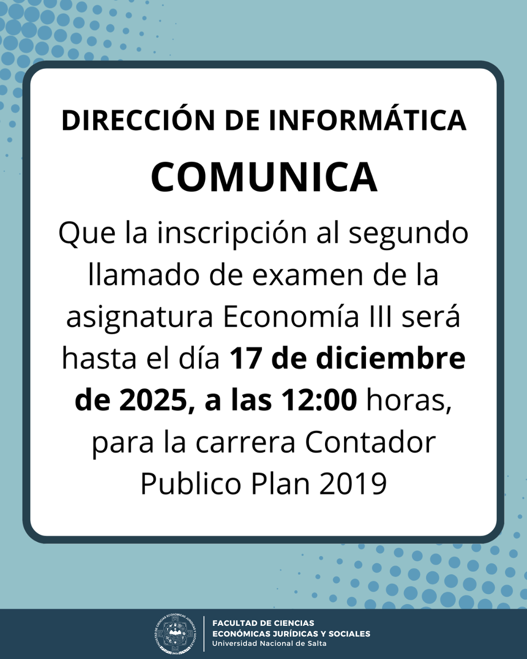 Las Autoridades de la Facultad de Ciencias Económicas Jurídicas y Sociales informan que, el día de mañana Jueves 18 de Diciembre, los exámenes se desarrollaran con total normalidad.