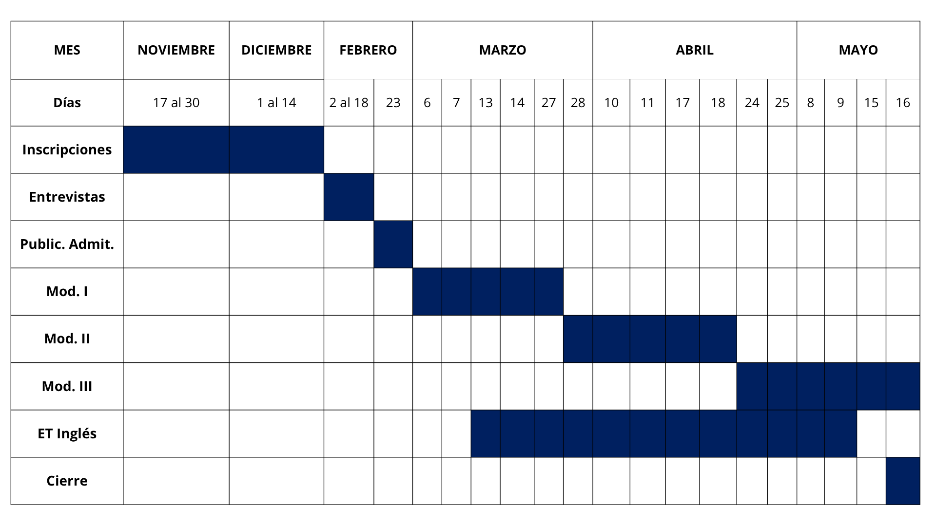 La inscripción se efectuará mediante un formulario en línea, disponible en las fechas establecidas en el cronograma. La admisión se definirá mediante análisis del cumplimiento de los requisitos consignados en dicho formulario (preselección) y se complementará con una entrevista de admisión que contemple, entre otros aspectos, dominio de idioma inglés, motivación personal para participar, formación. La Asociación Civil AFS Programas Interculturales podrá intervenir ante cualquier consulta, a fin de contribuir a la equidad en el proceso evaluativo.