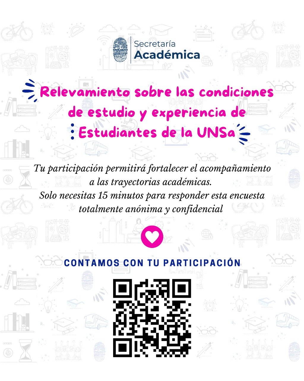 Tu experiencia como estudiante es clave para mejorar las trayectorias académicas y seguir construyendo una universidad más justa e inclusiva. Queremos conocer cómo estudiás, cómo organizás tu cursado y cuáles son las condiciones que influyen en tu formación.