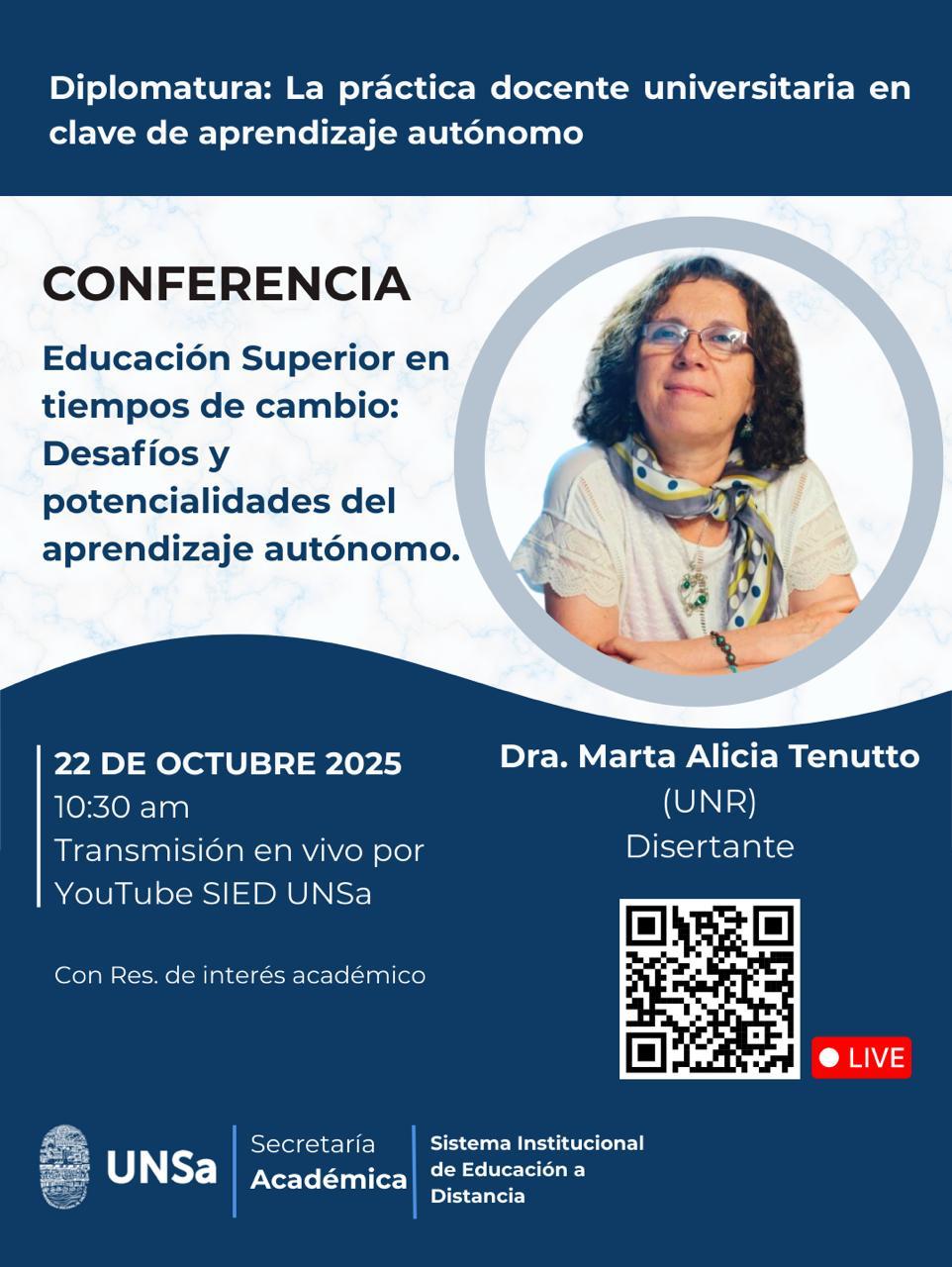 Modalidad: Virtual, con transmisión en vivo a través del canal de YouTubeSIED UNSa. Enlace de la conferencia: https://youtube.com/live/EqI7yxmvt1Y