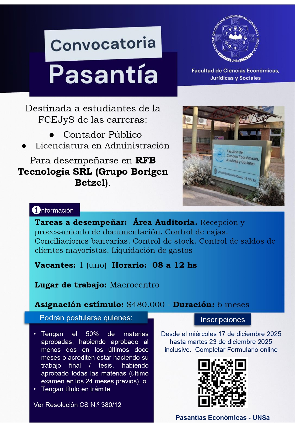 - El Ministerio de Economía y Servicios Públicos, junto a la UNSa Facultad de Ciencias Económicas, Jurídicas y Sociales, lanzan una oportunidad única para jóvenes salteños.