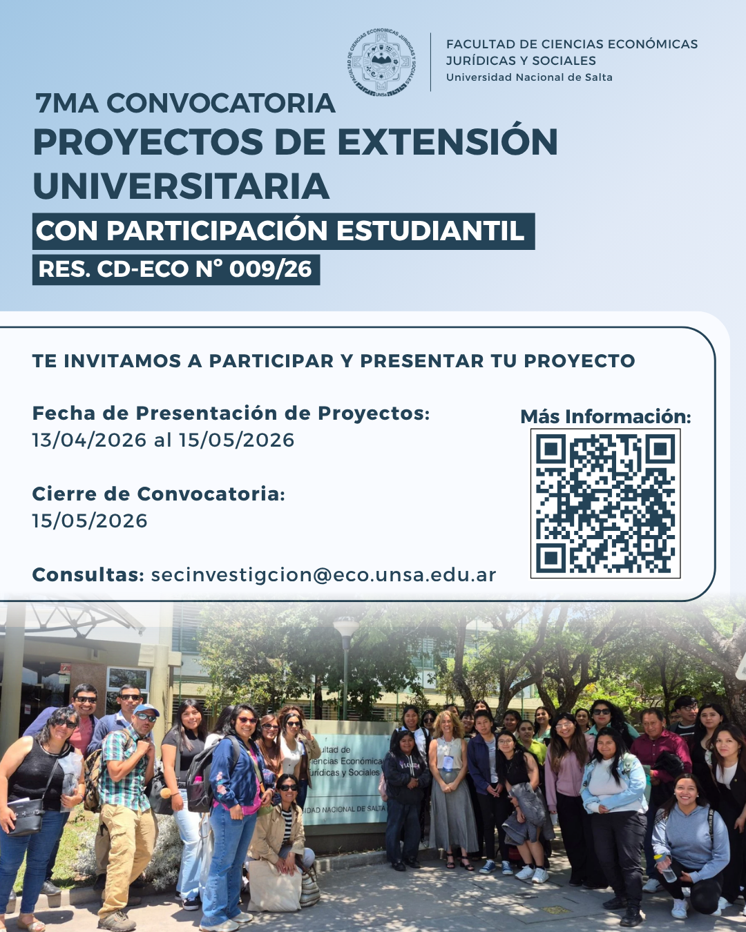 Desde la Secretaría de Investigación y Extensión de la Facultad los invitamos a participar en la 7ma Convocatoria de Proyectos de Extensión Universitaria con Participación Estudiantil.