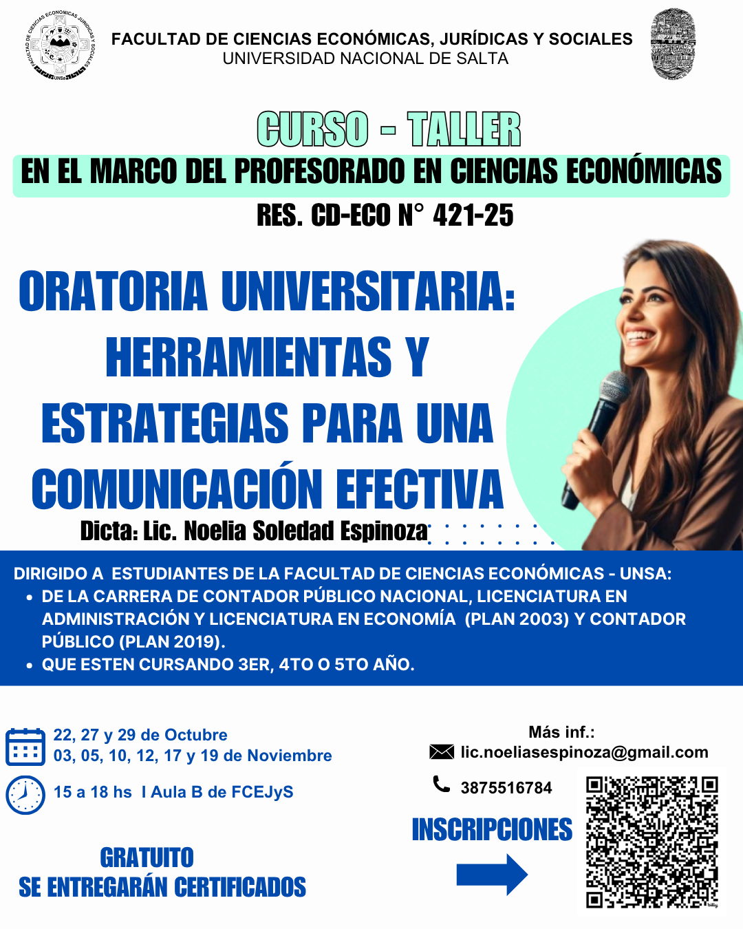 El curso propone brindar herramientas prácticas y estrategias de oratoria que permitan mejorar la expresión oral, potenciar la seguridad al hablar en público y optimizar la transmisión de ideas en contextos académicos y profesionales.